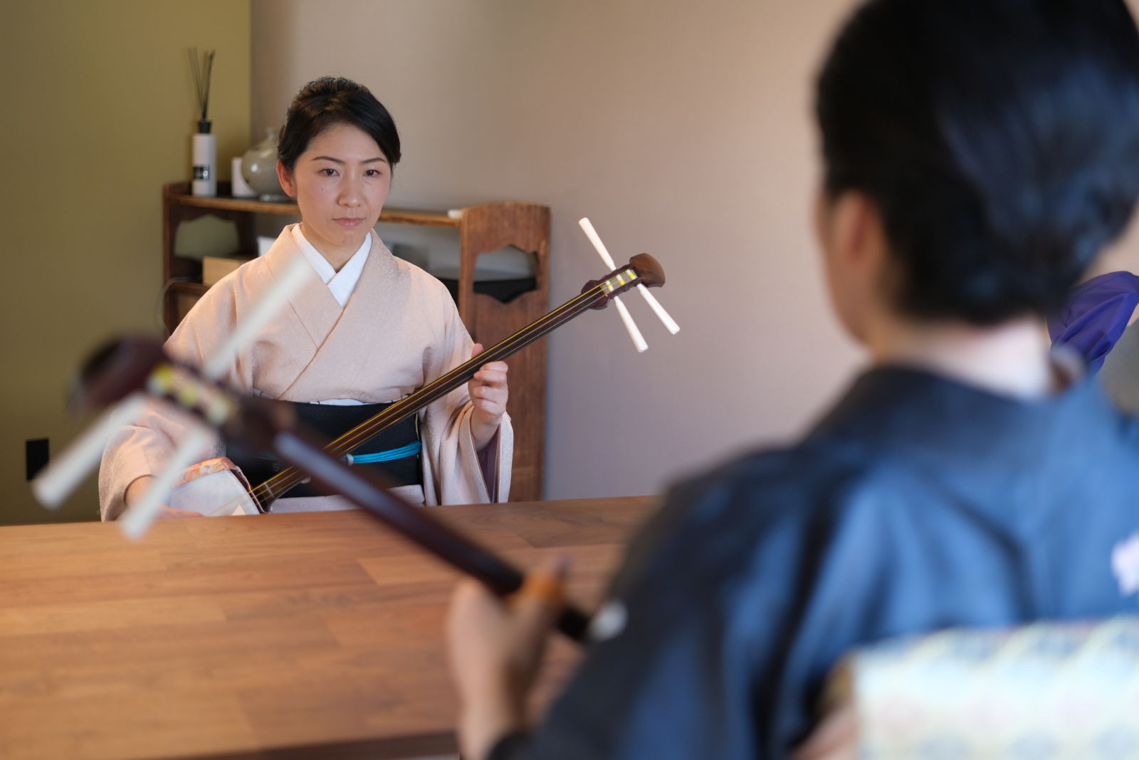 可在演奏家的指导下体验三味线演奏,以及观赏仅为您进行的现场演奏。演奏家将仔细认真地进行传授,能够让您学会弹奏简单的曲子。