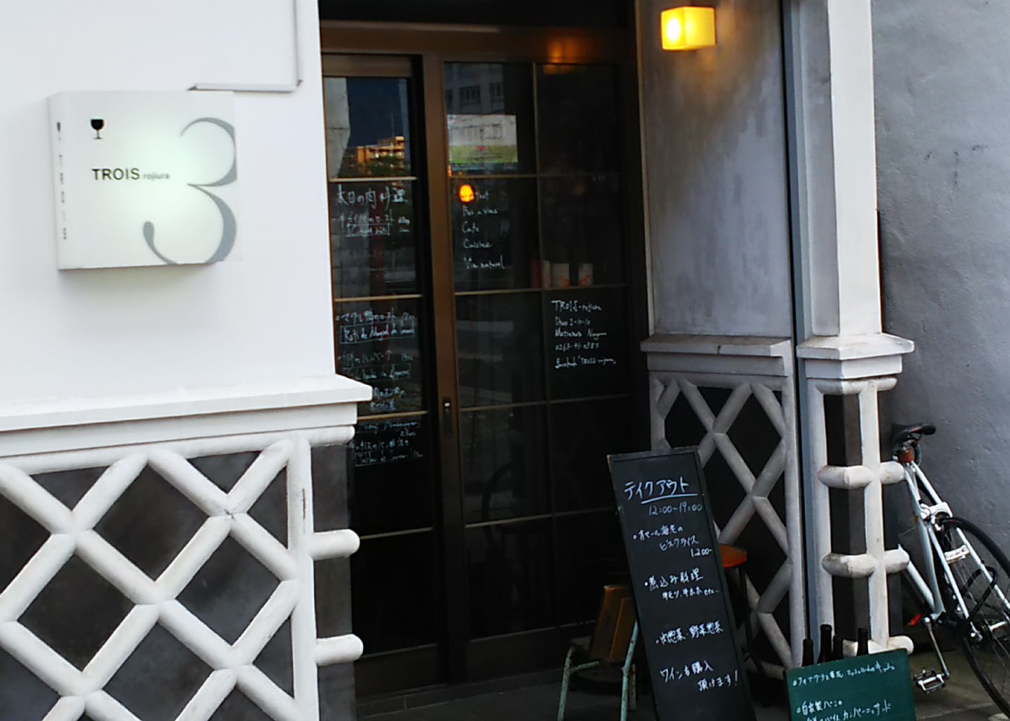 Trois 西餐,咖啡店,酒吧,他 / 法式料理 N25 非现金支付 外卖 备有桌椅座席 休息日 星期二营业时间 17:00~23:00TEL 0263-41-0385SNS 地址 中央2-10-10 谷歌室内地图外卖预约 不需要配送 不可
