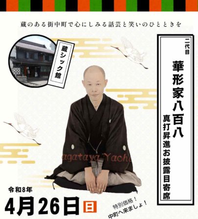 - 15:00~16:30 落語「二代目華形家八百八」真打昇進お披露目寄席・前座:深志高校落研(予定)