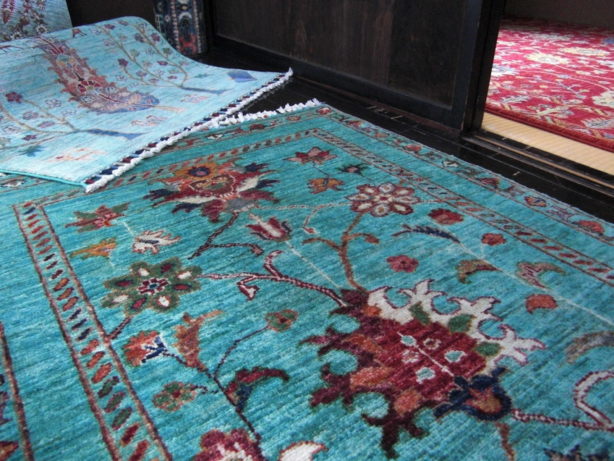 代表色はターコイズブルーです。絨毯では珍しい色ですね。