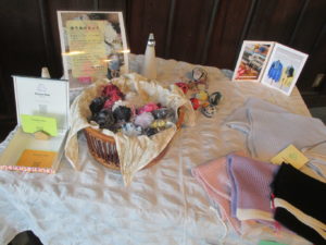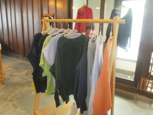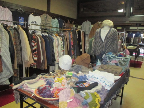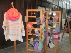今日と明日、母屋の土間で編み機で編んだハンドメイドニットの展示会が行なわれています。