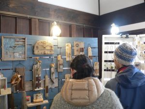 出展は、猪口さん(木綿)、本気布さん(ガラ紡の布小物)、市之瀬ミシンさん(古布リメイク洋服)、Beach Lumberさん(流木アートインテリア)、伽耶さん(襤楼・木綿)、天然色手染工房はちはちさん(藍染・布・洋服)、Deep Blueさん(耐熱ガラスアクセサリー)、