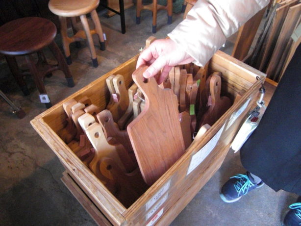 入口を入ると、まずカッティングボードのコーナーがあり、みなさんどれにしようか~迷い中です。