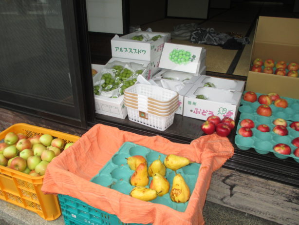今日1日、母屋の和室1で信州の果実などの展示会が行われています。