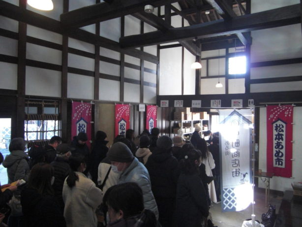 2026.01.10 全国あめ博覧会催し物今日明日の二日間、恒例の全国あめ博覧会が開催されています。 寒さのなか、朝から沢山のお客様にご来館いただいています。ありがとうございます。 あめ市にちなんだ松本の飴はもちろん、全国から厳選した飴もそろっています。 今日明日ともに10:30~15:00までこの二日間は、イベントが盛りだくさんで、街歩きも楽しみですね。 「謙信の義塩伝説」から450余年。令和8年のあめ市は盛り上がっています!!