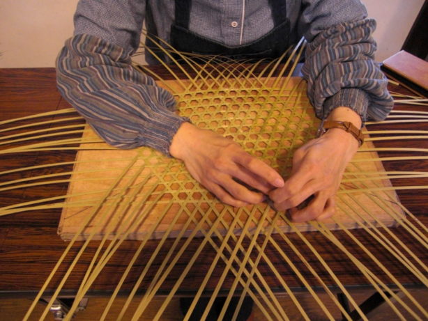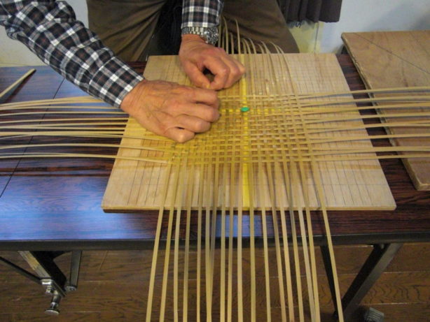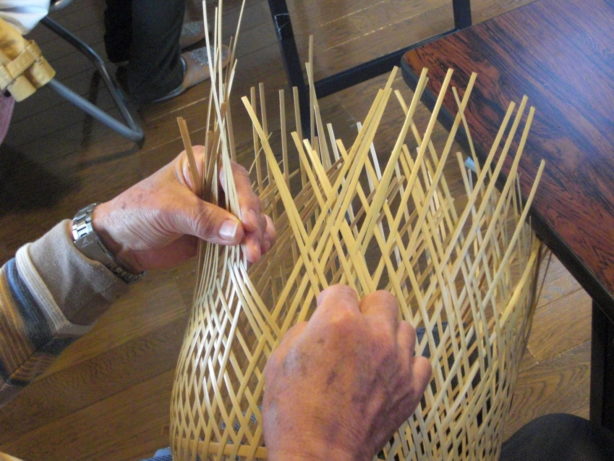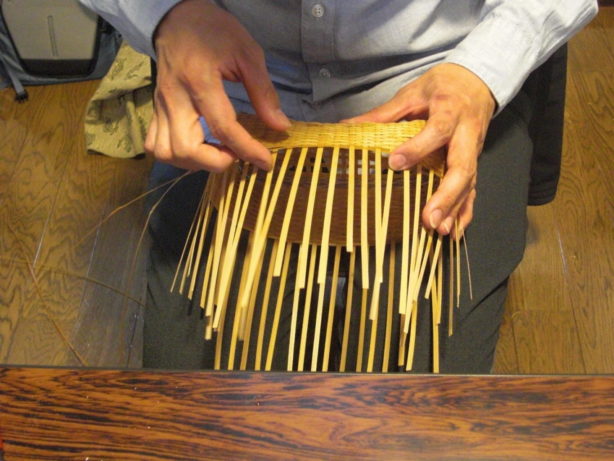 小鉢を盛るかごを製作中。家族で囲む食卓用だそうです。ステキ♡
