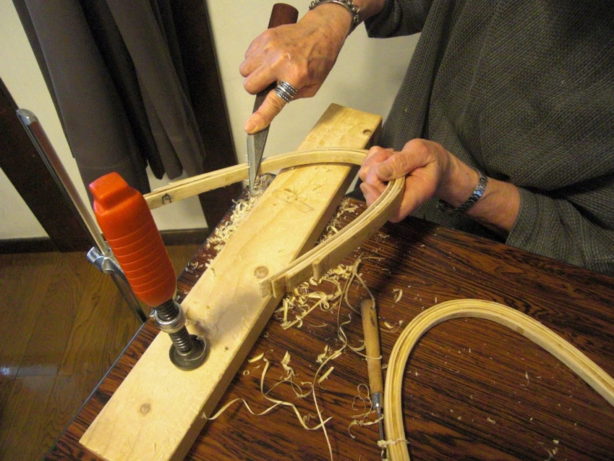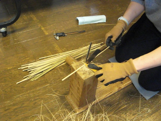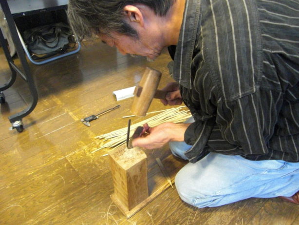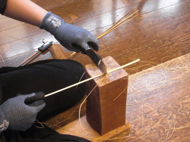 また材料となる竹の茎を割って細い棒にする「ひご」を作ることも教えて頂けます。