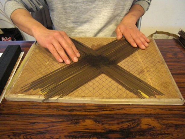 カゴバッグの持ち手を製作中