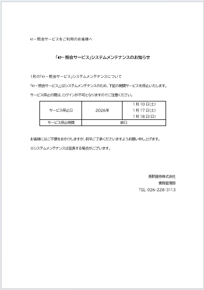 「e-照会サービス」システムメンテナンスのお知らせ 詳細は以下画像をクリックして…