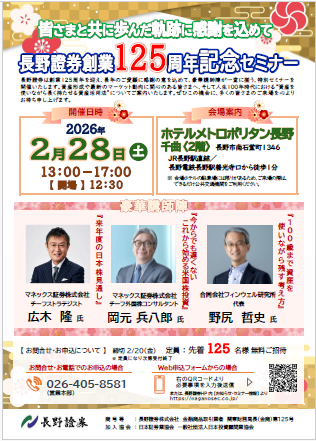 2/28(土)「長野證券創業125周年記念セミナー」開催のお知らせ 詳細は以下の…